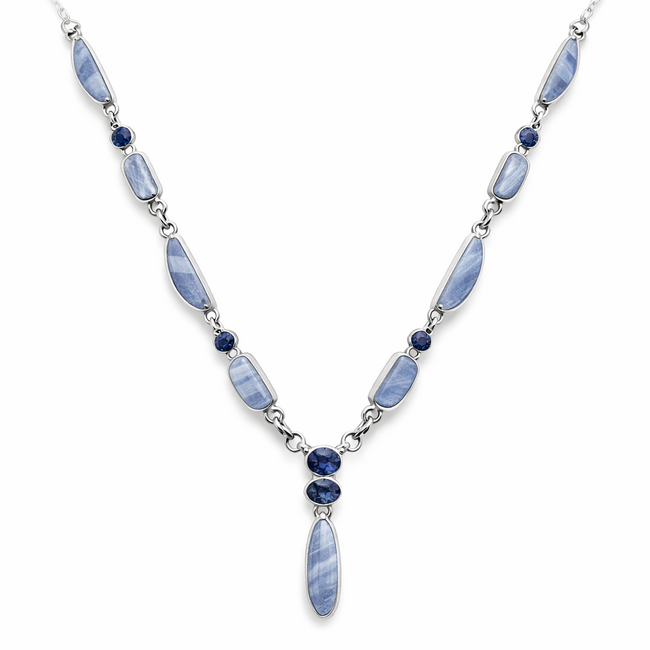 Review Agate, pearl, & tanzanite necklace sterling silver