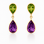 Amethyst (1.88 ctw) & peridot (0.83 ctw) pear shape drop earrings 18k yellow gold