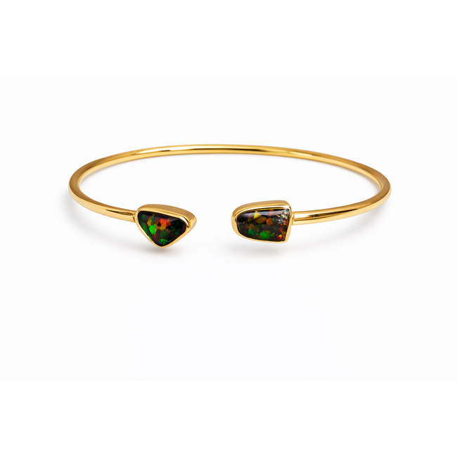 Ammolite cabachon bezel set twister bracelet gold over sterling silver vermeil