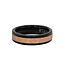 This striking band combines the sleek durability of black tungsten with the warmth of 14K rose gold, featuring a hammered center for added texture and style. A unique and bold design, perfect for those seeking a modern, yet timeless piece.