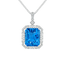 A showcase of bold color and timeless elegance, this blue topaz and diamond pendant is crafted to captivate. At its center lies a radiant-cut blue topaz, carefully faceted to highlight its rich, vibrant hue. Surrounding the gemstone is an ornate halo of brilliant round diamonds, meticulously set to enhance the fire and brilliance of the centerpiece.