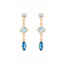 Blue & white topaz (1.80 ctw) multi shape 3 stone dangle earrings 18k yellow gold