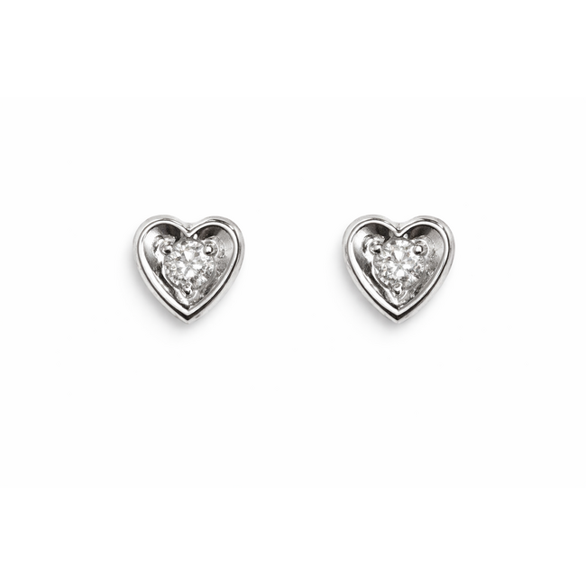 Diamond (0.20 ctw) heart stud earrings 14k white gold 1.2 gr