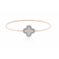 The clover, long associated with luck, protection, and prosperity, takes center stage in a polished white gold frame accented by brilliant round diamonds. The bangle itself is crafted in warm yellow gold, creating a refined contrast that highlights both the shape and the sparkle of the design.