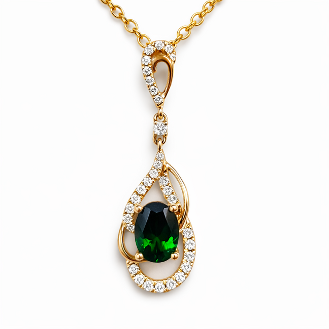 Green garnet (0.32 ct) & diamond (0.17 ctw) oval pendant 14k yellow gold