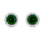 Refined and radiant, these green garnet and diamond halo earrings bring a fresh touch of color and sophistication to any collection. Each earring features a brilliant round green garnet (0.85 carats total), glowing with deep, lush hues reminiscent of spring foliage.