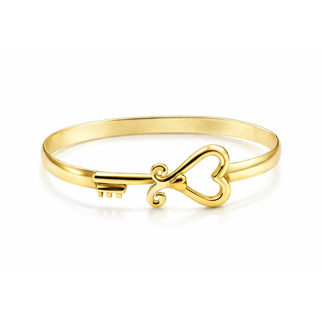 Give the key to your heart to that special someone with this unique cuff bracelet. The Key to her Heart bracelet is perfect for any romantic occasion. It’s made of beautiful yellow gold and has a small heart within a larger heart, making it the perfect symbol of love. This stunning piece was created by award-winning designer Terry Quinn, so you know its top quality. It would make an excellent gift for any woman in your life – especially if she means the world to you. Buy your Key to her Heart bracelet today!