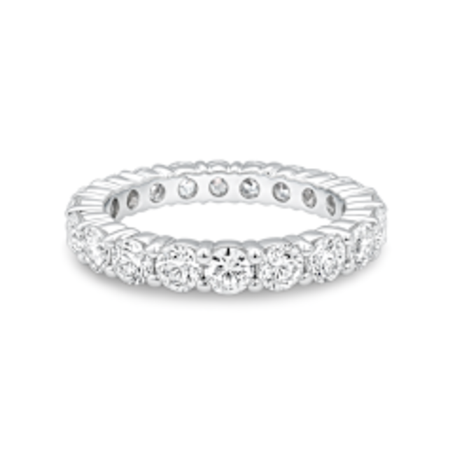 Each diamond is precisely matched for cut, clarity, and fire, creating an uninterrupted stream of light around the band. The refined white gold setting enhances the brilliance of every stone, giving this design both timeless appeal and modern sophistication.