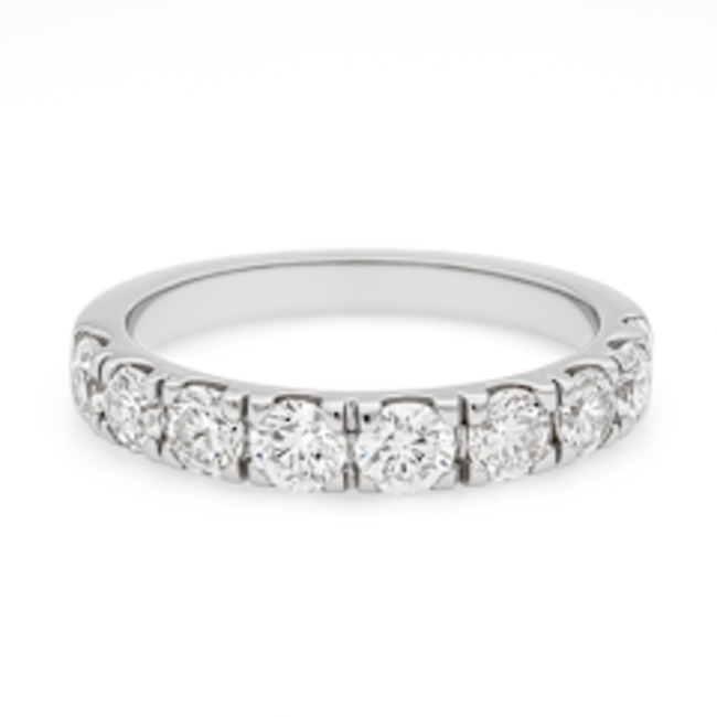This exquisite 9-stone band combines timeless craftsmanship with modern sustainability. Crafted in luminous 14K white gold, it features nine round brilliant lab-grown diamonds set in a sleek, symmetrical row. Each diamond is expertly matched for brilliance and proportion, creating a dazzling display of light and refinement.