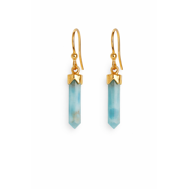 Larimar "pencil" dangle earrings gold over sterling silver vermeil