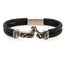 Style: Men's black leather bracelet with stainless steel Harley clasp