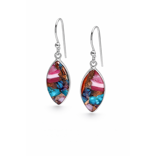 Pink spiney oyster marquise bezel set dangle earrings sterling silver