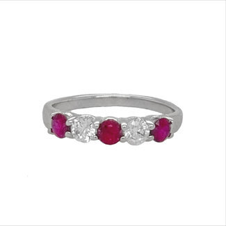Ruby (0.68 ctw) & diamond (0.37 ctw) 5 stone band 14k white gold 2.6 gr