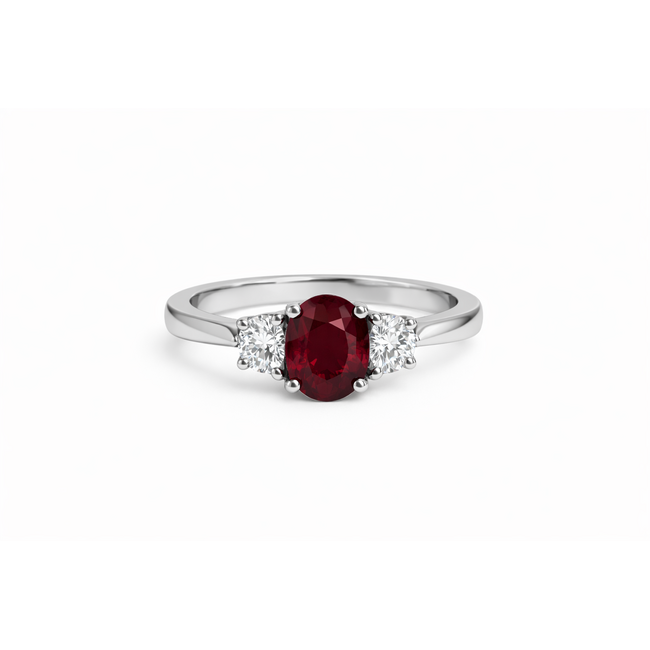 Ruby (1.52 ct) & diamond (0.29 ctw) 3 stone ring platinum 5.5 gr