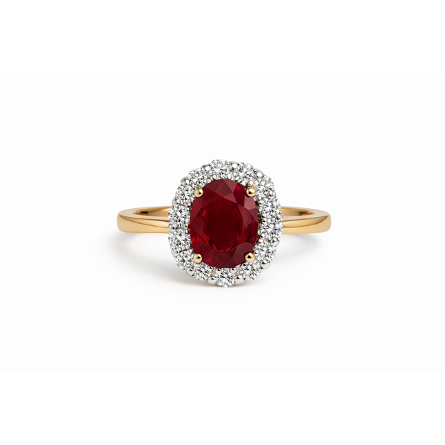 Ruby(2.00 ct) & diamond (0.90 ctw) oval halo ring 14k yellow gold 5.2 gr