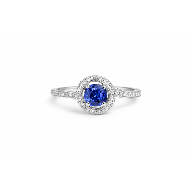 Sapphire (0.92 ct) & diamond (0.45 ctw) halo ring 18k white gold 3.3 gr