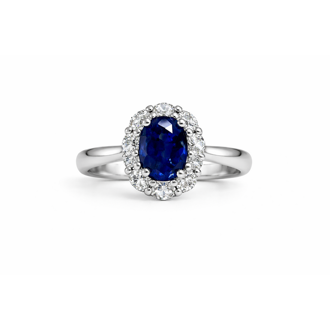 Sapphire (2.42 ct) & diamond (1.07 ctw) halo ring platinum 8.5 gr