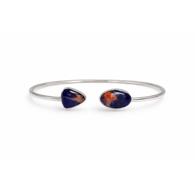 Sodalite cabachon bezel set twister bracelet sterling silver