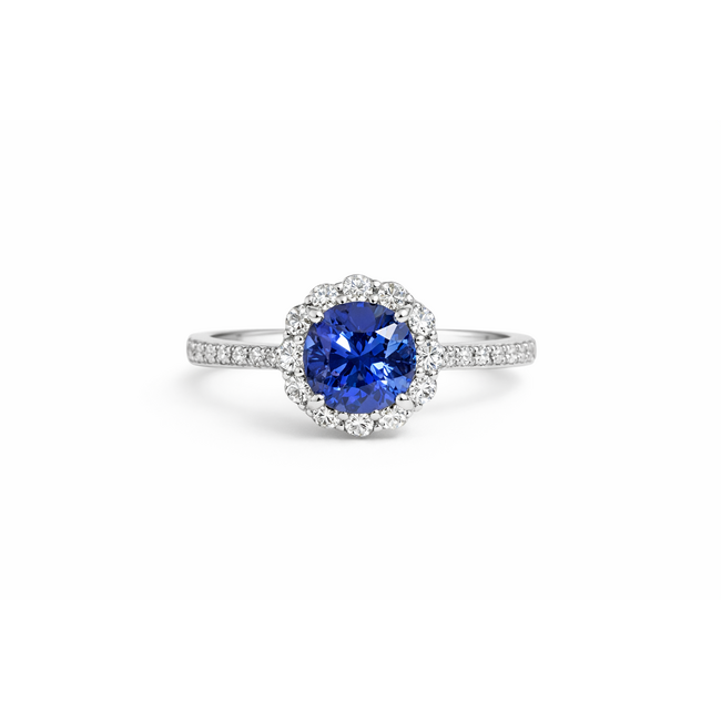 Tanzanite (1.38 ct) & diamond (0.18 ctw) halo ring 14k white gold 3.0 gr
