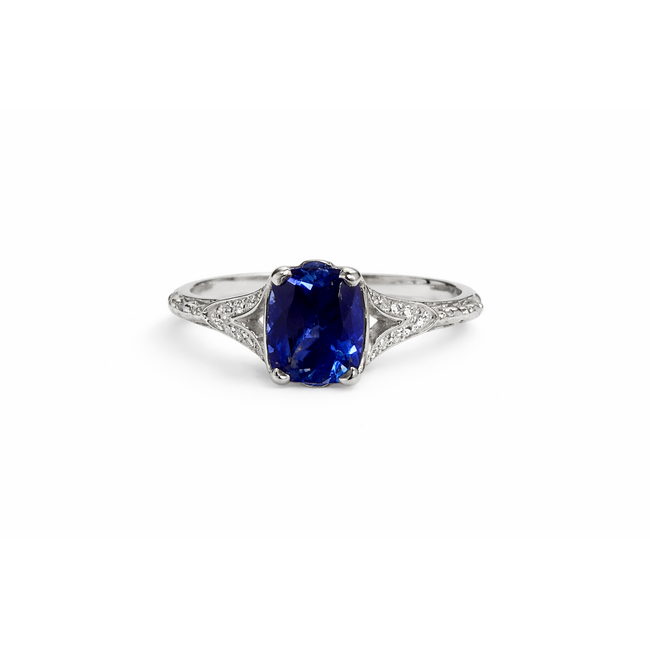 Tanzanite (2.08 ct) & diamond (0.10 ctw) ring 14k white gold 3.2 gr